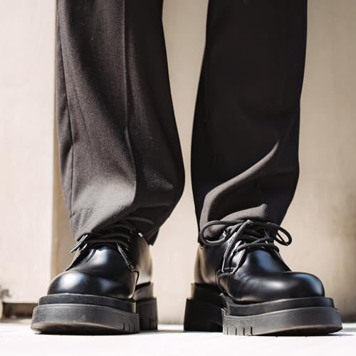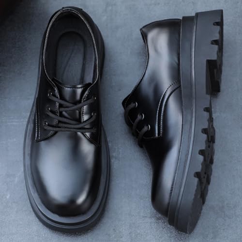 Men's Leather Lace Up Platform Oxfords Shoes,Comfortable Round Toe Lugs Business Formal Dress Shoes Casual Low-Top Non-Slip Pump Shoes for Men 6