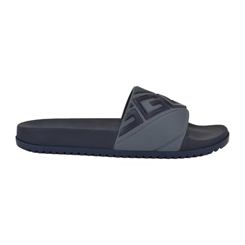 • Add some style to your summer fit with these Guess sandals. These slides are elevated by details across the upper seen in the stripe panels and 3D logos. Est. 1981, Guess is a global lifestyle brand and a symbol of a young, adventurous lifestyle.