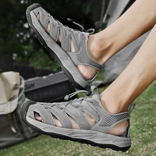 Mens Closed Toe Sandals Beach Water Shoes Men Hiking Sport Leather Saltwater Fisherman Waterproof Sandals 7