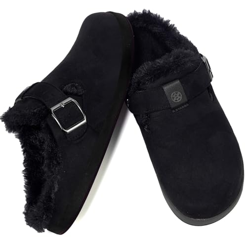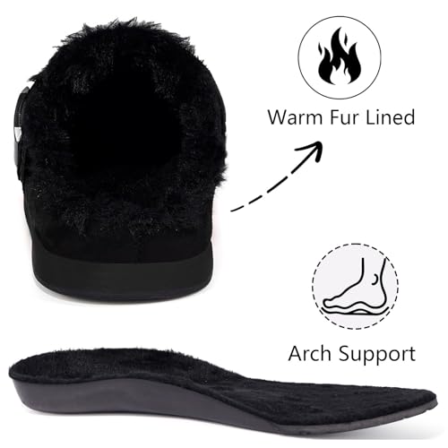Fur Lined Clogs for Women Men Suede Winter Slippers Arch Support Slip on Mules Potato Shoes with Removable Cushion Footbed Warm Home House Shoes 6
