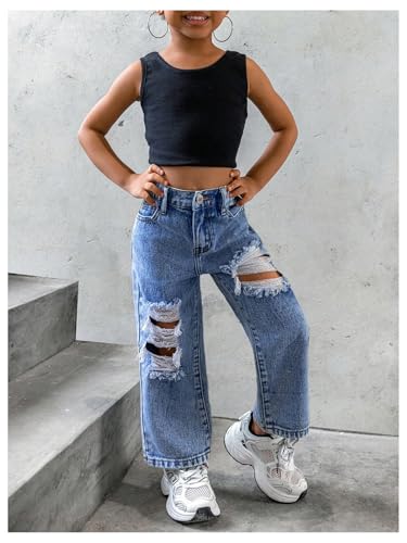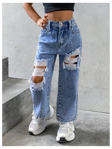 WDIRARA Toddler Girl's Ripped Straight Leg Crop Jeans Elastic Waist Denim Pants with Pockets 6