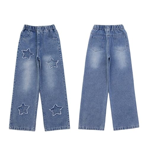 Girls Straight Star Applique Jeans Baggy Elastic Waist Wide Leg Jeans Vintage Y2K Streetwear Aesthetic Teen Clothes 6