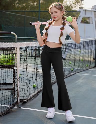 • Crossover Waistband: The high waisted flare pants is designed with V-shape waist, and the waist is elastic enough to perfect fit kids' body