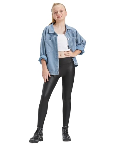 HARTPOR Faux Leather Leggings for Girls - High Waisted Stretch Pleather Leggings Teens Leather Pants 6