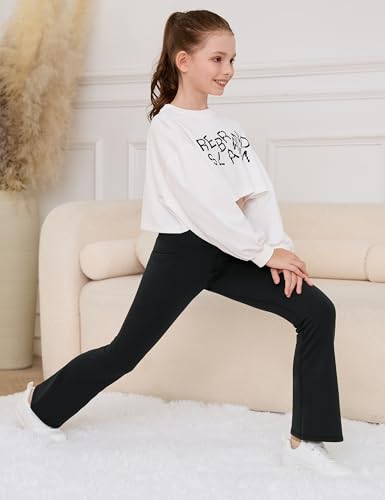 Desol Girl's Thermal Fleece Lined Flare Leggings High Waisted Bell Bottom Kids Warm Yoga Pants with Pockets Preppy Clothes 4