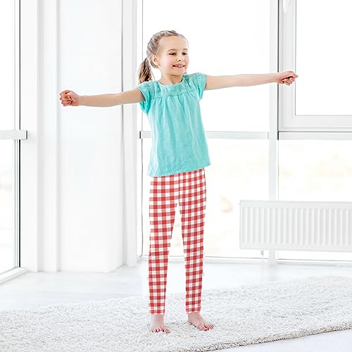 Wusikd Red White Gingham Girls' Leggings Toddler Doodles Tartan Kids Yoga Pants Dance Active Tights 9-10T 3
