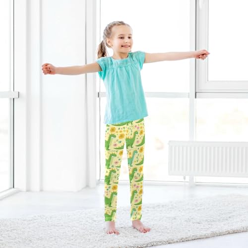 Vdsrup Girls Leggings Yellow Flowers Dinosaur Kids Length Leggings Pants Athletic Yoga Pants Toddler Tights Trousers 4T 7