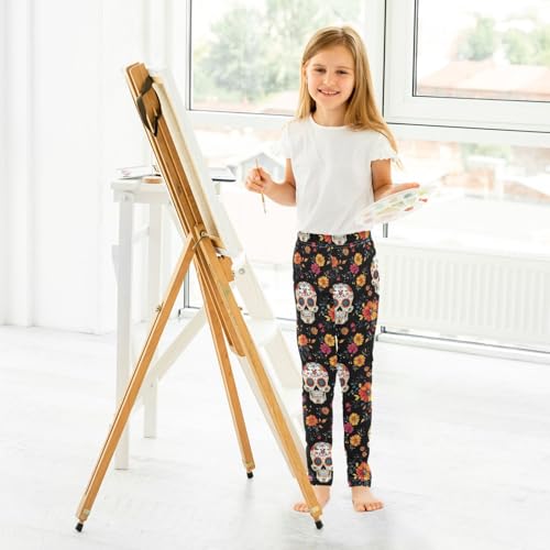 Floral Maxican Classic Skull Girls Casual Leggings for Kids Printed Long Pant Bottoms Stretch and Soft 4