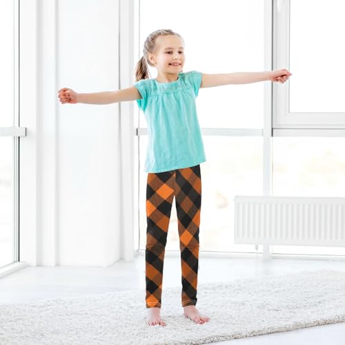 Girls Leggings Orange Black Tartan Plaid Kids Length Leggings Pants Toddler Athletic Soft Tights Trousers 4T 7