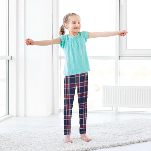 Girls Leggings Red Blue Tartan Plaid Kids Length Leggings Pants Toddler Athletic Soft Tights Trousers 4T 7
