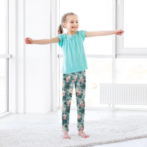 Girls' Athletic Leggings Ankle Length Yoga Dance Pants Kids Teen 4T Strawberry Flower Green 7
