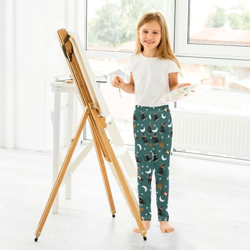 Girls' Athletic Leggings Ankle Length Yoga Dance Pants Kids Teen 4T Black Cat Broom 7