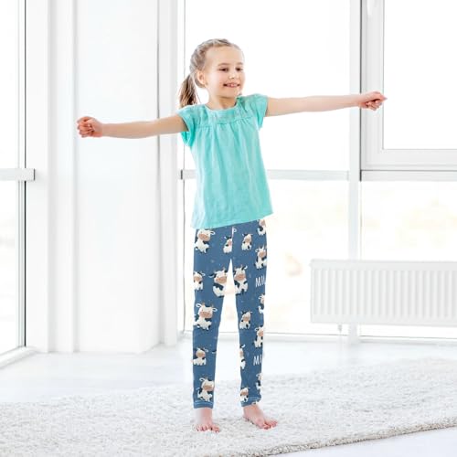 Vdsrup Girls Leggings Milk Cartoon Cow Blue Kids Length Leggings Pants Athletic Yoga Pants Toddler Tights Trousers 4T 6