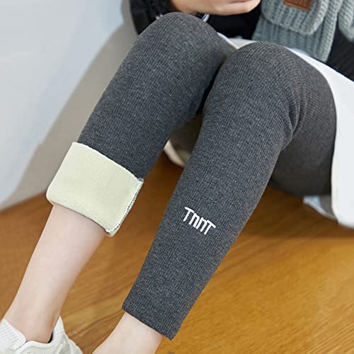 Girls Fleece Lined Leggings Stretch Thermal Tight Ribbed Winter Pants Solid High Waist Slim Warm Sherpa School Tights 6