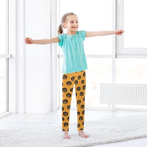 Girls' Athletic Leggings Ankle Length Yoga Dance Pants Kids Teen 4T Black Pumpkin Silhouette 6