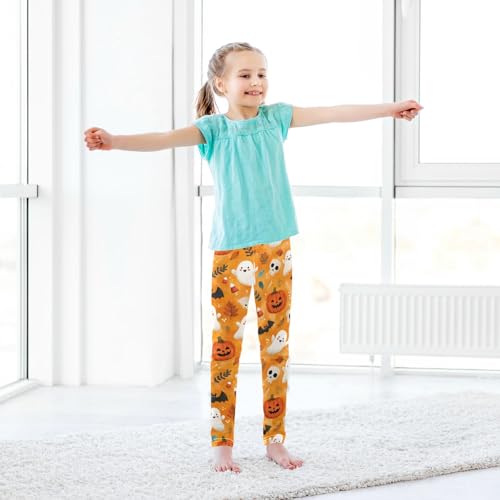 Girls Leggings Halloween Ghost Orange Kids Length Leggings Pants Toddler Athletic Soft Pumpkin Tights Trousers 4T 7