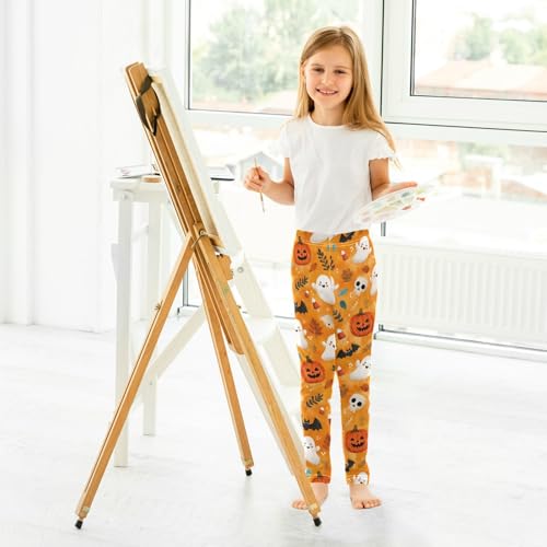 Girls Leggings Halloween Ghost Orange Kids Length Leggings Pants Toddler Athletic Soft Pumpkin Tights Trousers 4T 6