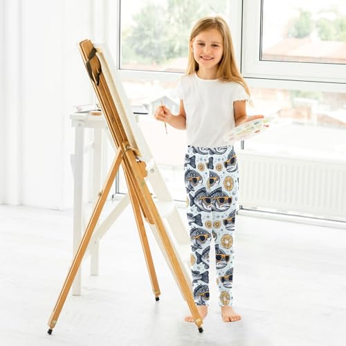 Girls' Athletic Leggings Ankle Length Yoga Dance Pants Kids Teen 4T Fish Lemon 7