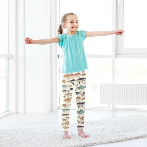 Girls Leggings Fishes Vintage Kids Length Leggings Pants Toddler Athletic Soft Tights Trousers 4T 7