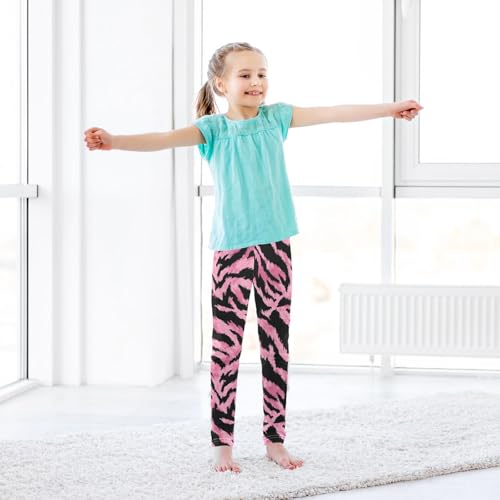 Pink Tiger Skin Print Girls Leggings Ultra Soft Compression Yoga Gym Pants for Kids 4-10T 5