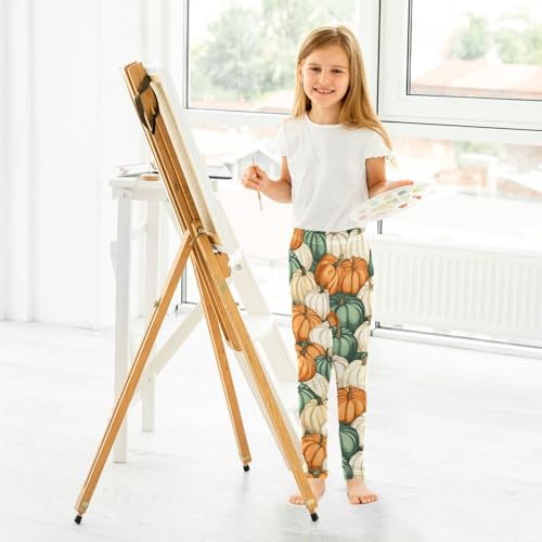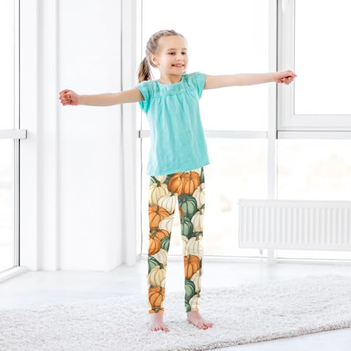 Fall Pumpkin Harvest Print Girls Leggings Soft Stretch Workout Yoga Dance Pants for Kids Casual Tights 4
