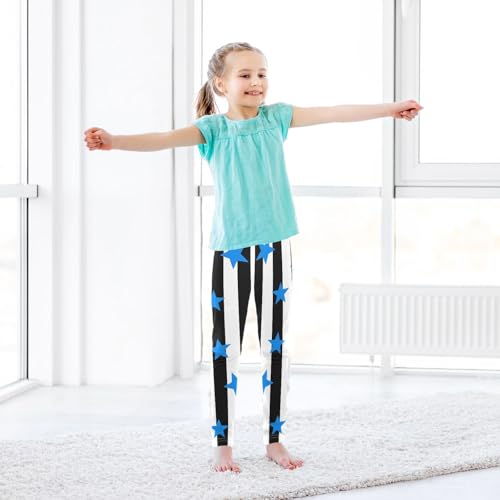 Blue Stars Stripe Girls Leggings Soft Stretch Workout Yoga Dance Pants for Kids Casual Tights 6