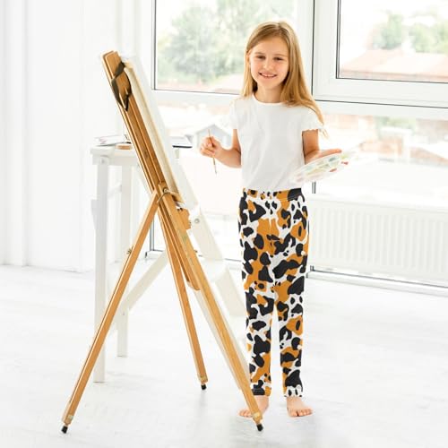Orange Black Cow Skin Print Girls Casual Leggings for Kids Printed Long Pant Bottoms Stretch and Soft 6