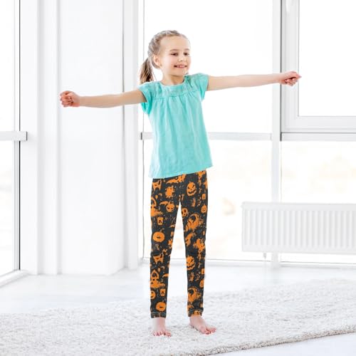 Halloween Pumpkin Bat Orange Girls Casual Leggings for Kids Printed Long Pant Bottoms Stretch and Soft 6