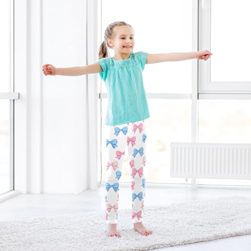 Girls Leggings Blue and Pink Bows Soft Toddler Leggings for Girls Kids Pants Size 4T-10T 6