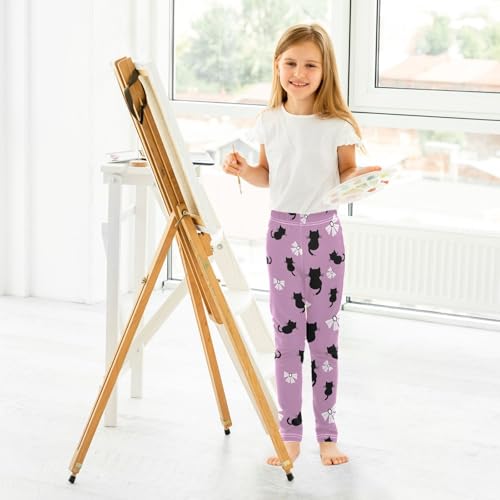 Girls Basic Leggings Baby Girls Pants Black Cat Bow Tie Soft Footless Stretchy Tights Pants 4-10Y 6