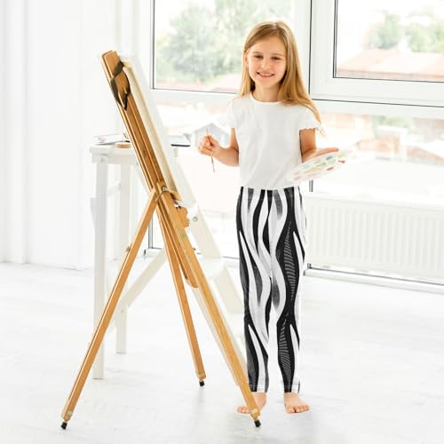 Black and White Stripes Kids Girl's Active Leggings Stretchy High Waisted Pants Sports 4