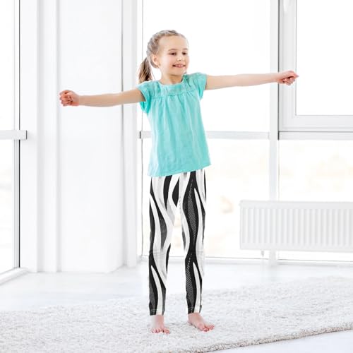 Black and White Stripes Kids Girl's Active Leggings Stretchy High Waisted Pants Sports 6