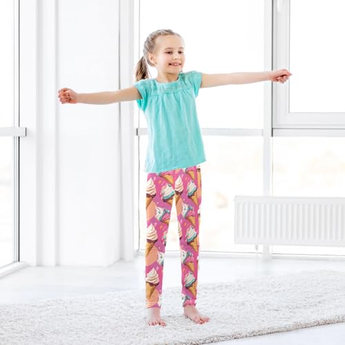 ALAZA Girls' Leggings Children's Yoga Pants Skinny Printed Dance Ice Cream Pinks Comfortable 4T 6