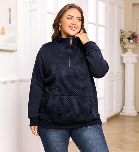 Women's Plus Size Quilted Pattern Lightweight 1/4 Zip Long Sleeve Casual Sweatshirts Pullovers Shirts Tops 6