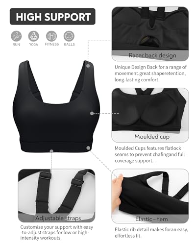 • VERSATILE SPORTS BRA::From strength training to yoga, running, or everyday errands, this high support sports bra is designed to be as versatile as your lifestyle demands.Adjustable straps secures smooth support that molds to your body. Its molded-cup construction offers the perfect balance of support and ease, making it an ideal choice for both intense workouts and casual wear under light clothing.