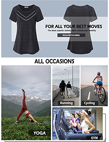 • Features: Loose fit. Stylish line decor front and cotton-dot style fabric, lightweight, quick-dry designs offering more comfy feel for any workout gym yoga exercise activities. Essential athletic shirts for women