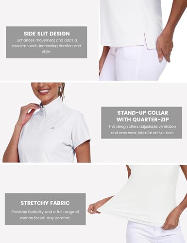 MoFiz Women's Short Sleeve Golf Polo Shirt Collared 1/4 Zip UPF 50+ Quick-Dry Lightweight Athletic Tennis Running Shirt 1