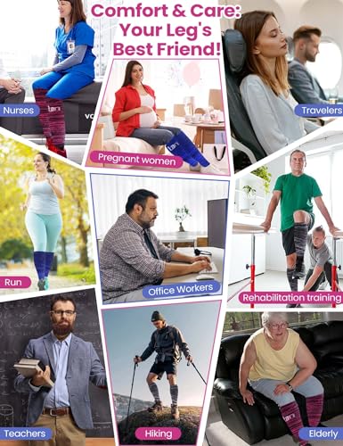 • Knee-High Support – These high-pressure plus size compression socks wide calf offer efficient joint and muscle support, aiding in the speedy recovery of leg injuries and inflammation. They are especially beneficial for those with circulation issues or who spend long periods standing or sitting. The perfect gift for long-standing workers, office staff, pregnant women, and nurses, diabetic, elderly