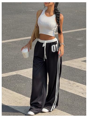 SOLY HUX Women's Plus Size Wide Leg Baggy Y2k Sweatpants Drawstring Waist Casual Pants Jersey Streetwear 1