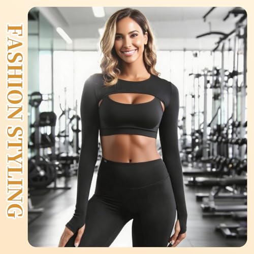 Hiball Workout Bolero Shrug Crop Top Long Sleeve Women, Sports Shrug Cropped Shirts, Cooling Shawl Arm Sleeves 6