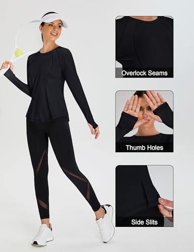 • UPF 50+ for Sun Protection: Long sleeve workout tops for women feature UPF 50+ sun protection fabric that blocks 98% of UV rays. Engineered for breathability and sweat-wicking, this lightweight four-way stretch material keeps you cool without sacrificing coverage during intense activities.