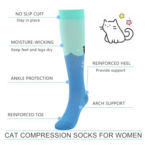 • Cute Compression Socks: Add a pop of fun to your daily routine with our womens cat socks featuring delightful designs! Cute cat patterns adorn these compression socks . Perfect for the energetic young ladies who love to infuse playfulness into her style, these bright and fresh colors keep legs stylish and comfortable. Get ready to step out in charming, comfort-conscious fashion that's as cute as they are practical