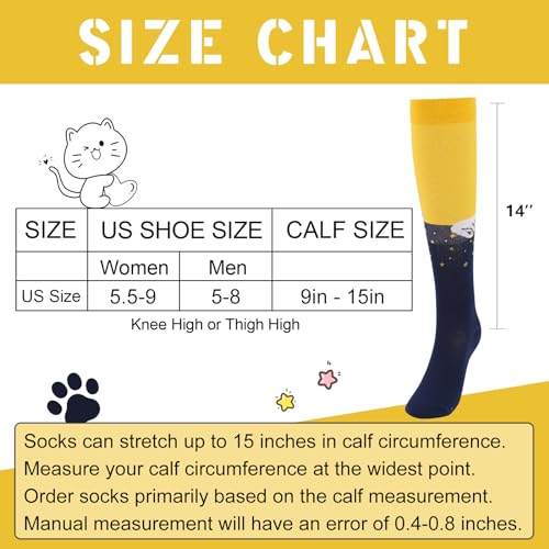 • US Size: US Shoe Size: Women 5.5-9/ Men 5-8. Calf Size: 9in - 15in. Knee high compression socks or over the knee compression socks. The cat socks women keep your feet and calves relaxed all day