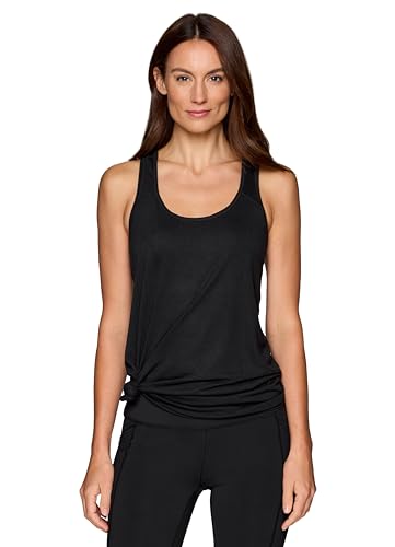 • GO BEYOND THE GYM - This twisted back tank top makes for a distraction free workout! Designed with a longer length and made of stretch jersey fabric, our top drapes to your body for a flattering fit