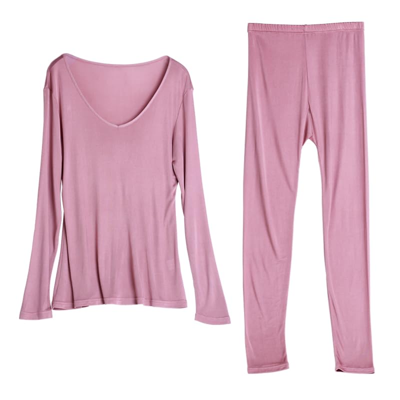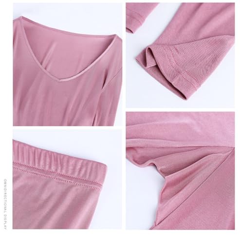 ZEEREE Womens Silk Thermal Underwear Set V Neck Mulberry Silk Long Johns Base Layer Top Bottom 2 Pcs Pajama Set 6