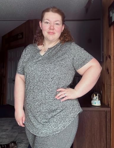 • 【Plus Size V Neck Tops Summer】For mid-length plus size running clothing covers the buttocks comfortably, an athletic top activewear with a curved hem would be a good option. Plus size tennis top allows for full range of motion during physical activity and features a sexy V-notch neck design adds a stylish touch to your workout attire.