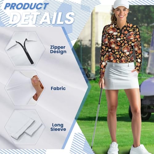 Womens Golf Tennis Shirts Long Sleeve Golf Collared Pullover Moisture Wicking 1/4 Zipper Lapel Workout Tops 1