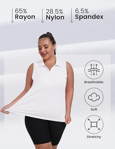 MoFiz Women's Plus Size Sleeveless Golf Polo Shirt Racerback V-Neck Oversized Golf Tops Summer Workout Collared Tennis Tops 7