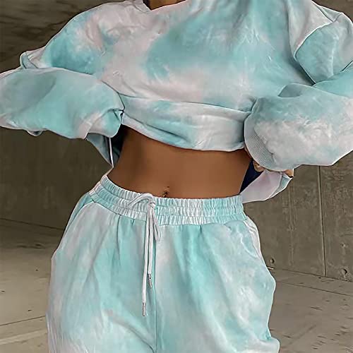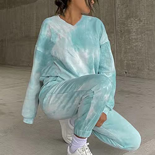HOT ! Women's Tie Dye Tracksuits Sets Casual 2 Piece Outfits Crewneck Long Sleeve Sweatshirt Jogger Pants with Pockets