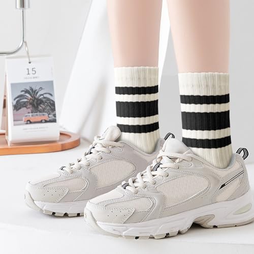 Retro Striped Crew Socks for Women Casual Soft Cozy Breathable Slouchy Athletic Calf Tube Socks 3